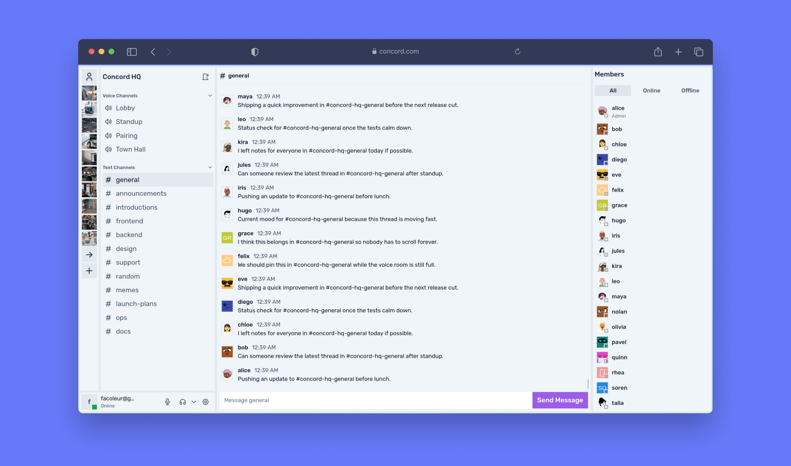 Concord was a good test of how I like to build products: start from structure, reduce repetition early, and keep the frontend understandable even when the app gets busy.